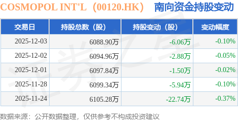 本站消息,12月3日南向资金减持6.06万股COSMOPOL INT'L(00120.HK)。近5个交易日中,获南向资金减持的有5天,累计净减持39.12万股。近20个交易日中,获南向资金减持的有20天,累计净减持238.98万股。截至目前配资知识,南向资金持有COSMOPOL INT'L(00120.HK)6088.9万股,占公司已发行普通股的3.71%。
